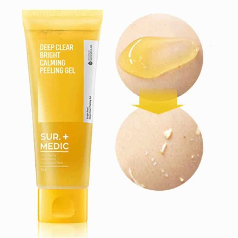 Медовая пилинг-скатка для ровного тона SUR.MEDIC+ Deep Clear Bright Calming Peeling Gel мягко отшелушивает ороговевший слой кожи, удаляет все виды загрязнений, активизирует процессы обновления и регенерации. Улучшает цвет лица, устраняет тусклость и покраснения, смягчает и разглаживает микрорельеф. Пилинг-скатка бережно стимулирует поверхность кожи, устраняет омертвевшие клетки, пыль, излишки себума, убирает жирный блеск. Увлажняет, убирает сухость и шелушения, снимает раздражения, делает кожу гладкой и бархатистой. Средство обладает прозрачной гелевой текстурой медового оттенка, при нанесении на влажную кожу преобразуется в маленькие катышки. Не вызывает сухости и стянутости. Подходит для всех типов кожи.
