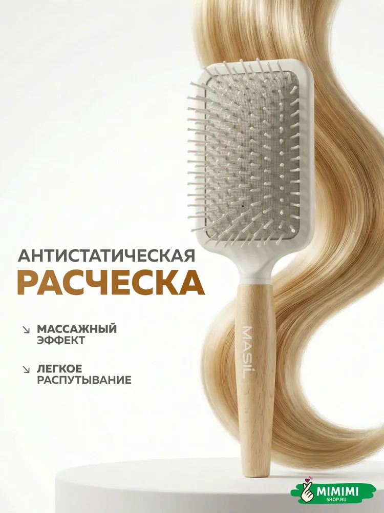 MASIL WOODEN PADDLE BRUSH: массажная расчёска для бережного распутывания любых волос