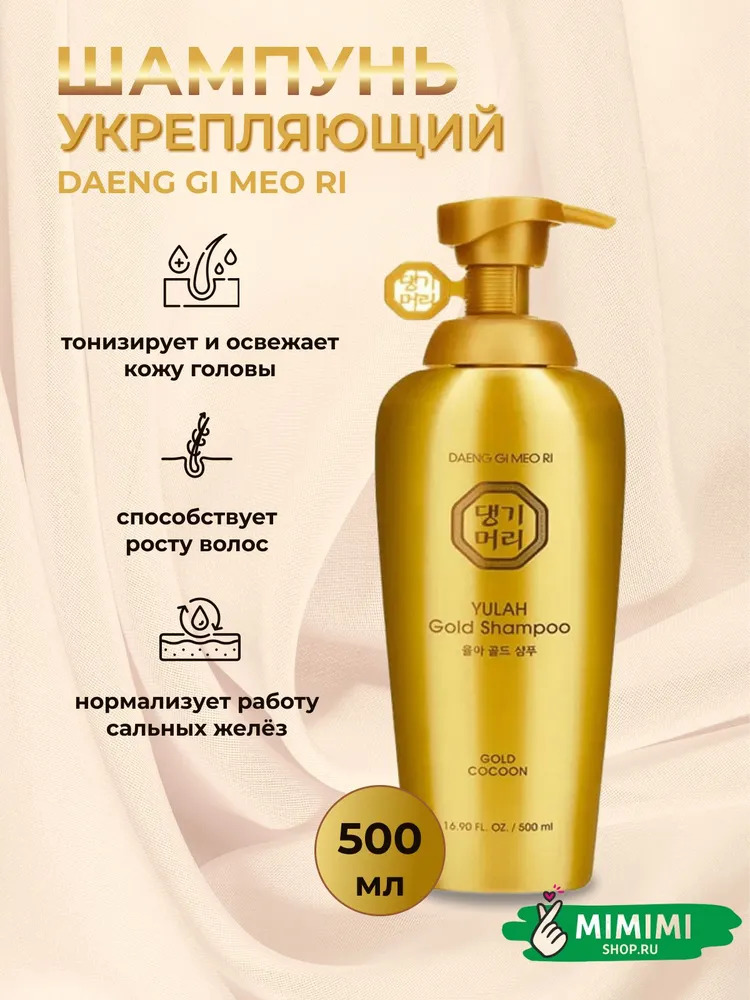 Укрепляющий шампунь для ослабленных волос Daeng Gi Meo Ri Yulah Gold Shampoo отлично тонизирует и освежает кожу головы, успокаивает раздражения и снимает зуд. Стимулирует приток крови, пробуждает спящие волосяные луковицы и способствует росту здоровых и крепких волос.